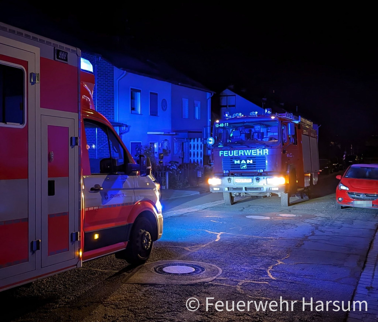 Unsere Funkmeldeempfänger rissen uns um 03:14 in der Früh aus dem Schlaf. Im Norden von Harsum soll sich eine hilflose Person hinter einer verschlossenen Tür verbergen. Nach einer umfangreichen Erkundung verschafften wir Rettungsdienst und Polizei durch eine Nebeneingangstür Zutritt zum Haus und rückten nach ca 50 Minuten an der Einsatzstelle wieder ein.